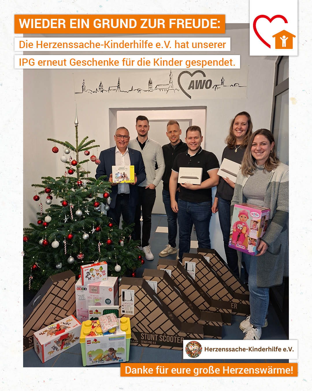 Mit strahlenden Augen konnten wir die vielen Geschenke entgegennehmen, darunter Scooter/Tretroller, Tablets für die Medienzeit, Puppen samt Zubehör und vieles mehr, dass unseren Kindern der Intensivpädagogischen Kinderwohngruppe und der heilpädagogischen Kleinkinderwohngruppe AWO Zwergerl große Freude bereiten wird.