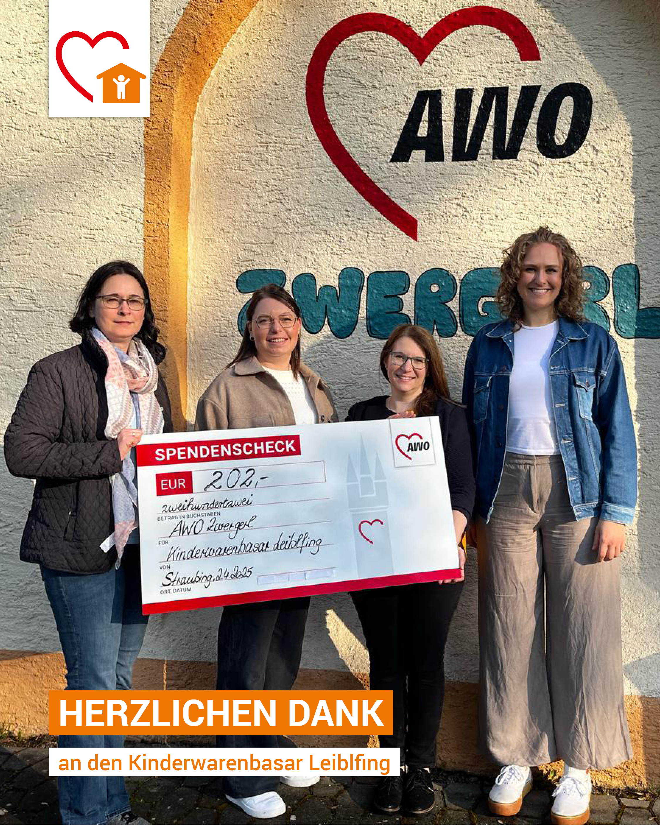Wieder einmal durften wir eine großzügige Spende entgegennehmen – dieses Mal 202,- € für unsere heilpädagogische Kleinkinderwohngruppe AWO Zwergerl.
